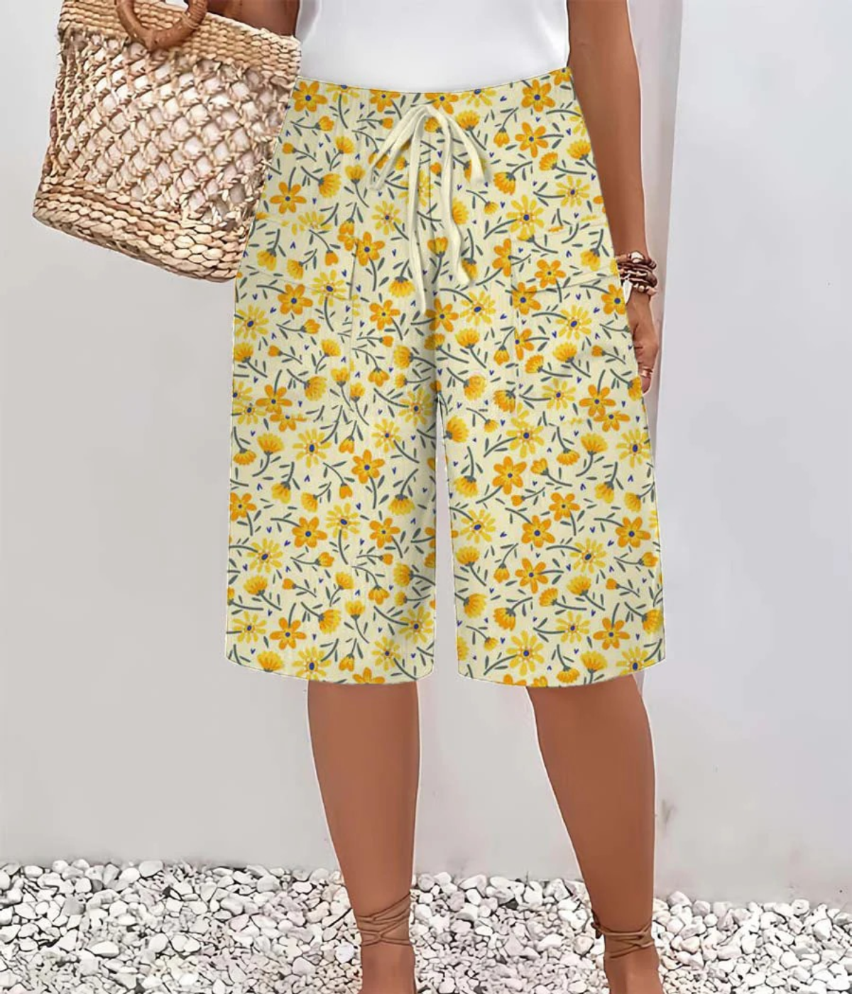 イエローフローラルサマーパンツ