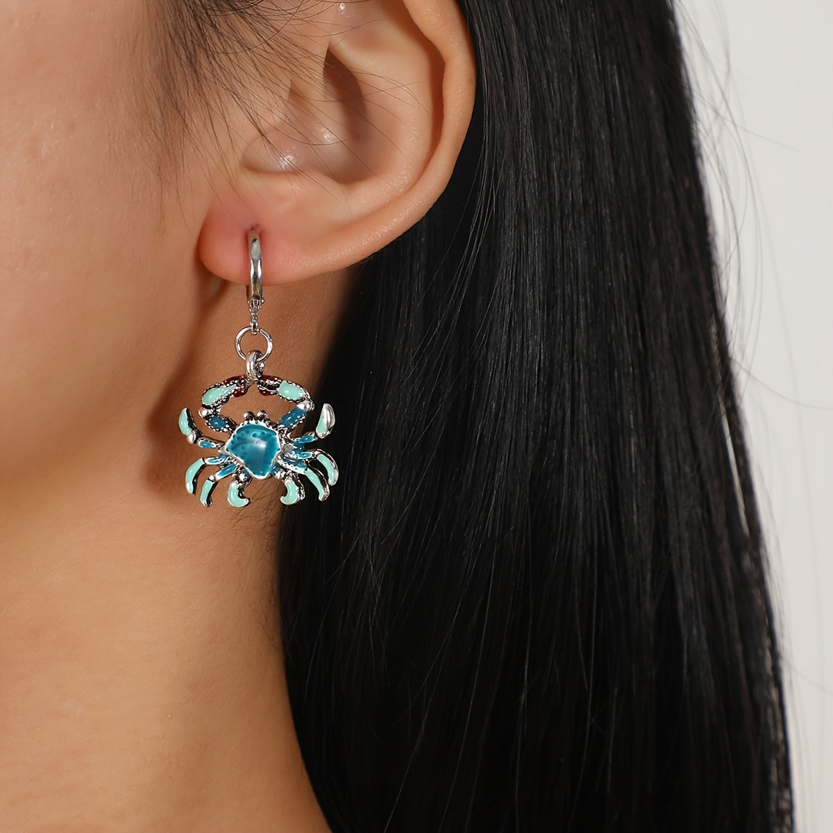 魅力的で独特なこれらのヴィンテージカニペンダントイヤリングは、日常のルックに whimsical なタッチを加えます。アンティークシルバー仕上げと柔らかな青のアクセントが、楽しく目立つデザインに海をインスパイアした洗練さをもたらします。