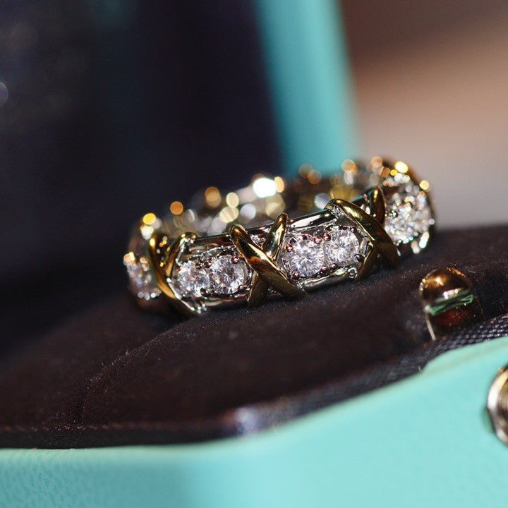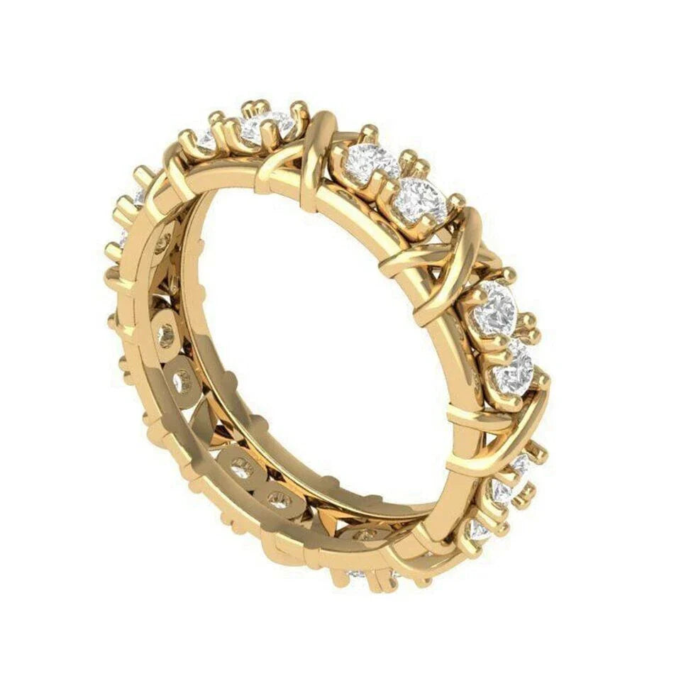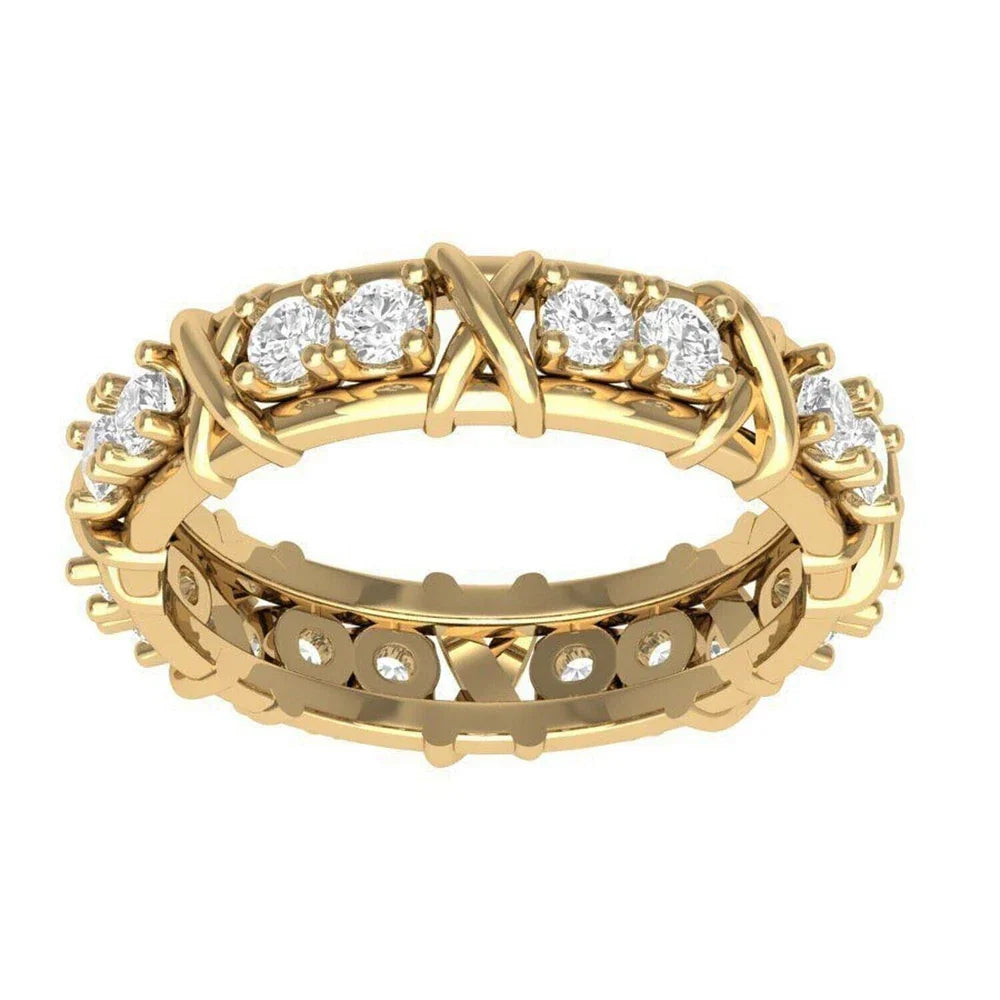 ♾ エタニティデザイン – ダイヤモンドがバンド全体を囲み、無限の愛を象徴します。