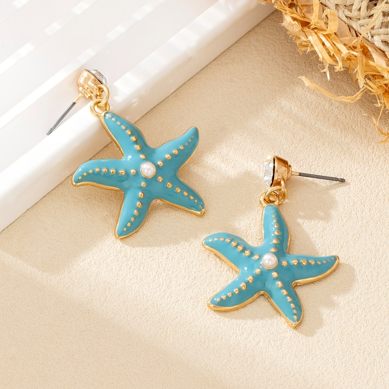 繊細でありながら輝くこのヒトデのエナメルイヤリングは、あなたのルックに海の精神をもたらします。パールとラインストーンのディテールがアクセントとなり、自由で洗練されたゴールドトーンの輝きを提供します。海辺の休暇、晴れた日、または海岸を夢見るために最適です。