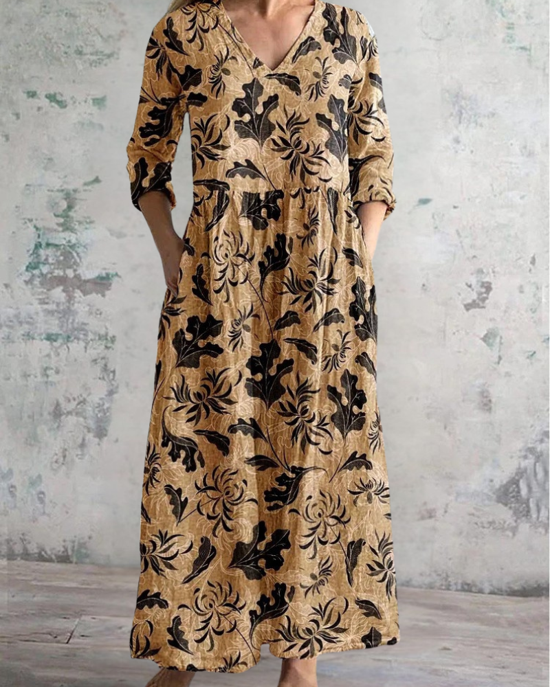 春の訪れとともに、このワンピースは最適な選択肢です。通気性の良い軽やかな生地は暖かい日中でも快適に過ごせ、7分袖が朝晩の涼しさにも対応します。