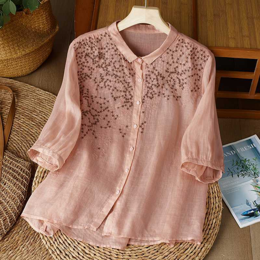 刺繍入り無地半袖ブラウスの心地よさと上品さを、ぜひご自身のワードローブに取り入れてみてください。