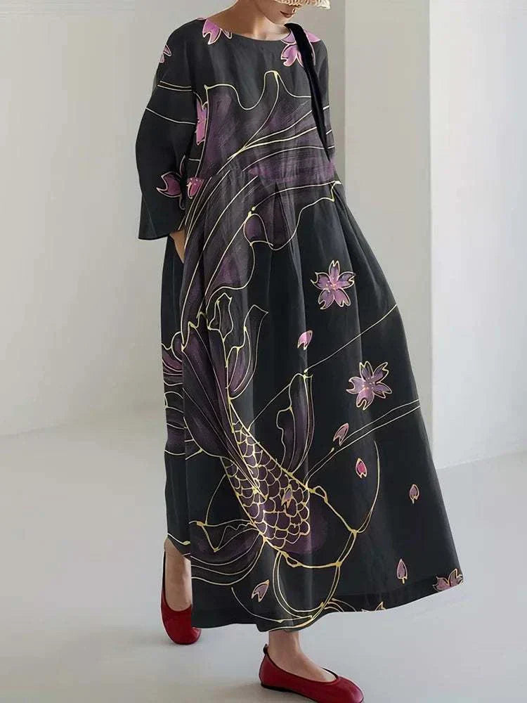 ゆったりとした流れるようなシルエットで、リラックス感と上品さを兼ね備えています。