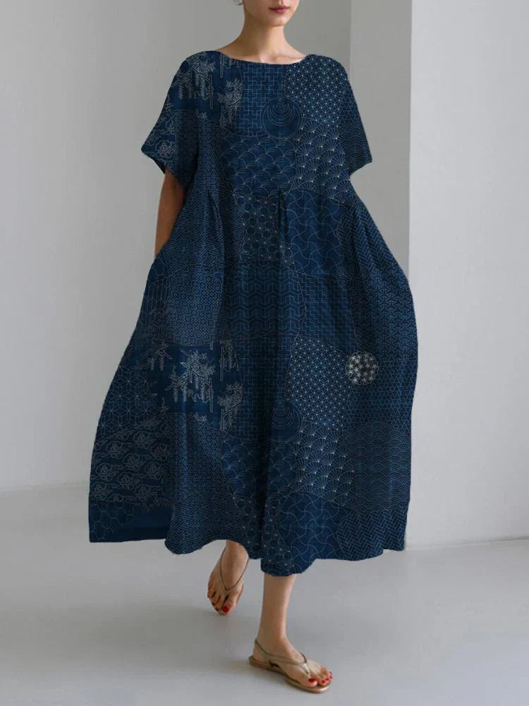 ゆったりとしたシルエットと芸術的な和柄プリントの組み合わせが絶妙で、どんなシーンでも女性らしさを引き立ててくれます。