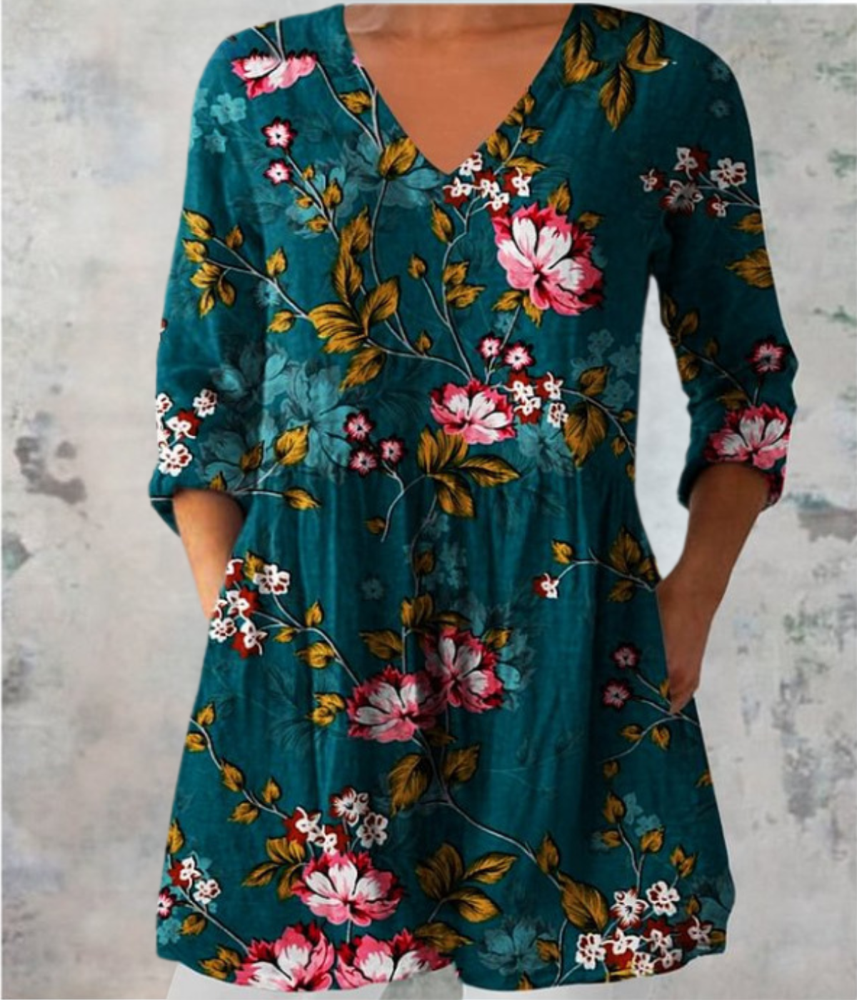 通気性の良い生地は、春の穏やかな気候に最適。Vネックと七分袖が程よい抜け感を生み、日常にもお出かけにも対応できます。