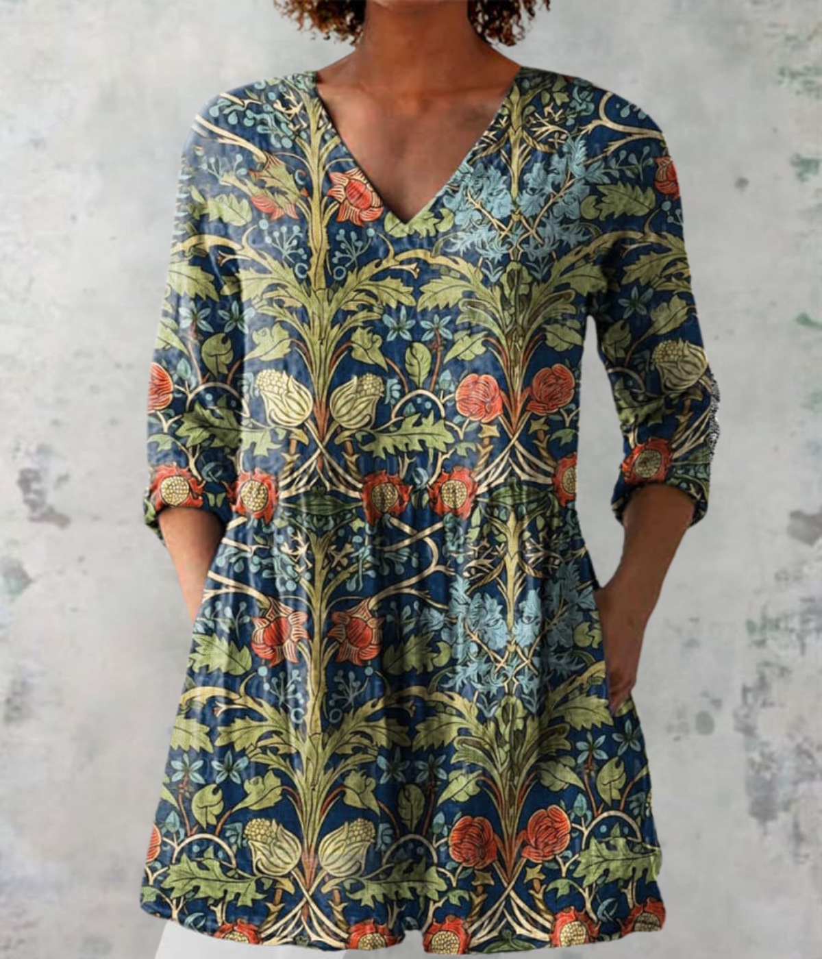 通気性の良い生地は、春の穏やかな気候に最適。Vネックと七分袖が程よい抜け感を生み、日常にもお出かけにも対応できます。
