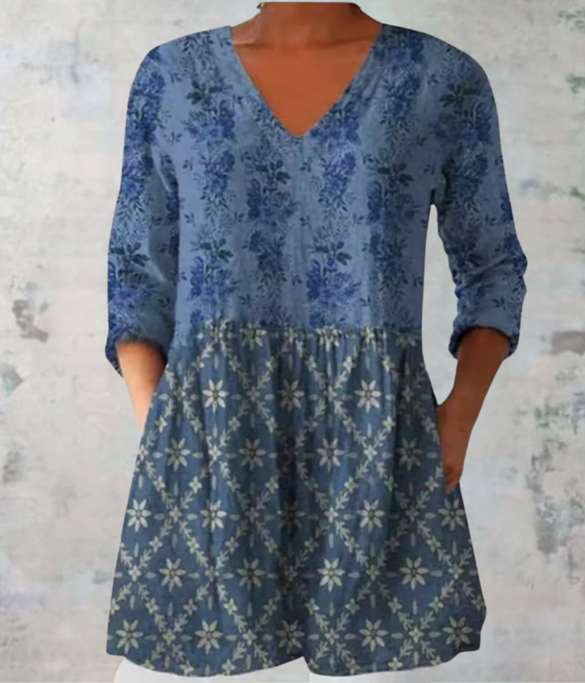 通気性の良い生地は、春の穏やかな気候に最適。Vネックと七分袖が程よい抜け感を生み、日常にもお出かけにも対応できます。