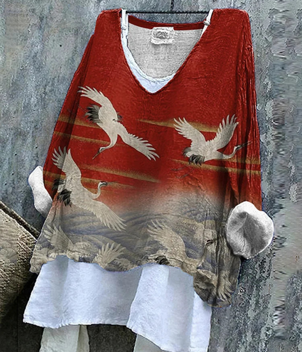 シワ加工のナチュラルな表情に、控えめながら印象的なプリント。レギンスやスカーフ、リネンパンツなどと合わせて、シーンに合わせたコーディネートが楽しめます。