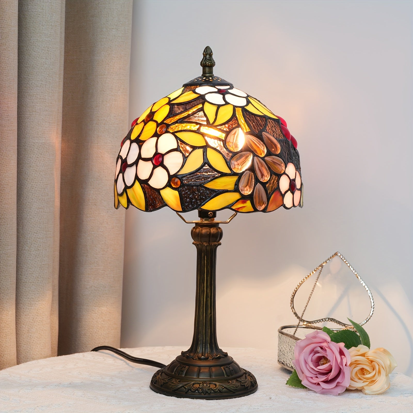 このアールデコ様式のステンドグラス卓上ランプは、パゴダ型シェードと花柄デザインで寝室に上品さを加えます。アンティーク仕上げのディテールがクラシックな雰囲気を演出し、ヨーロッパプラグで簡単に使用できます。220〜240Vで動作し、芸術的なスタイルを好む方に最適な装飾アイテムです。